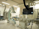 血管造影検査とは普通のX線写真では血管は写らないので、カテーテルという細い管を動脈あるいは静脈に挿入し、造影剤を注入して血管の状態を調べる検査です。脳血管障害や狭心症などの血管そのものの病気や、腹部臓器などの実質臓器の検査を行います。心臓、頭部、腹部、四肢などあらゆる部位に対応可能であり、血管の拡張術や、塞栓療法、薬剤注入などの治療も行われています。また当院では非血管系のIVRである経皮的胆管ドレナージ術(PTBD)や膿瘍ドレナージなども、血管造影室で行われています。