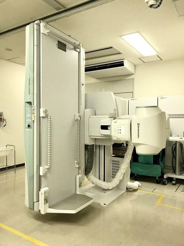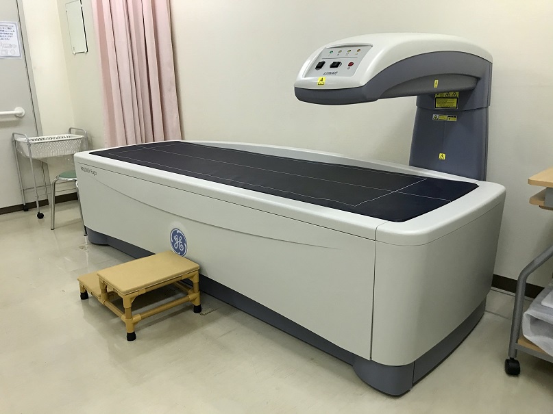 人間の骨は細胞成分とそれをささえる高原繊維・骨塩からなりたち、全身のカルシウムの99%は、この骨塩として骨に貯蔵されています。骨塩定量とは骨塩の密度をはかることで、骨粗しょう症や代謝性骨疾患の診断に用います。一般に骨塩が多いほど骨折しにくく、少なければ骨折しやすいと言われています。当院では低エネルギーのX線を照射し、その骨がどのくらいX線を吸収したかで骨塩量を測定し、正常値と比較して重症度の判定を行っています。