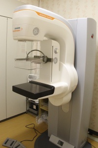 乳房専用のX線撮影装置のことで、この装置を使って撮影された画像をマンモグラフィといいます。マンモグラフィ検査は、乳がんを診断する検査方法のひとつです。触ってもわからないような早期のものや、しこりを作らない乳がんを診断することができます。悪性の病気だけでなく、良性のものも見つかります。乳房を上下または左右から挟みながら圧迫し、薄く均等に拡げた状態で撮影します。そうすることで、乳房の中をより鮮明に写し出し、また、圧迫した乳房の厚さが薄いほど少ないX線量で撮影できます。