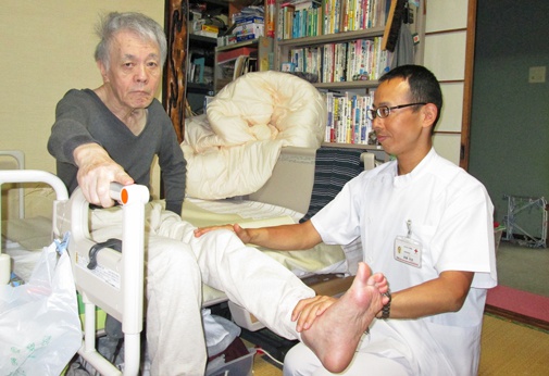 当ステーションでは看護師が自宅に訪問し、ご本人とご家族が安心して家庭で療養できるように、健康チェックや日常生活援助、介護指導を行ないます。リハビリが必要な方には、理学療法士も自宅に訪問し、身の回りの動作の自立や家庭でできるリハビリの指導、福祉用具のアドバイスを行ないます。