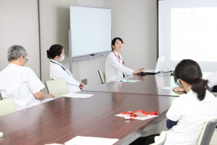 研修医の着実な成長をサポートするため、各研修医が1ヶ月間に学んだこと、経験したこと、感じたことを毎月プレゼンしてもらいます。発表会には指導医のほか、看護師、事務職員などの多職種が参加し、研修医が着実に成長に向かうよう見守り、助言をします。研修状況に応じ、柔軟にプログラムの見直しも行います。さらに、研修医自らが、来月の目標を立てて、自己評価も行うことをくりかえしながら、生涯を通じて自ら成長できる医師をめざしていただきます。