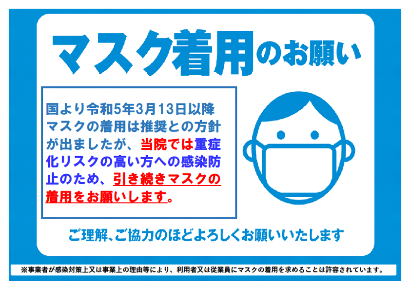 ご来院時のマスク着用のお願い